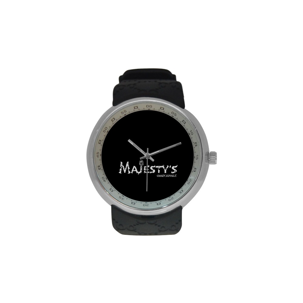 * Boitier Fashion en acier inoxydable argenté, cuir noir, cadran rond classique.