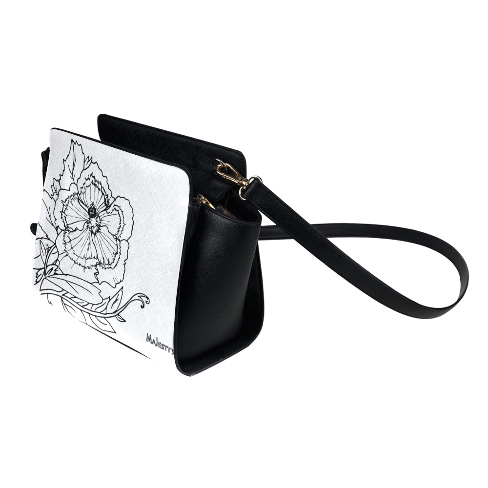 Fermeture supérieure à glissière trois quarts; soufflets ouverts sur les côtés.